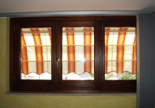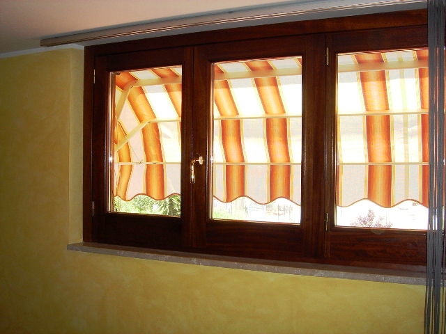 Finestra 3 ante in legno di iroko tinto