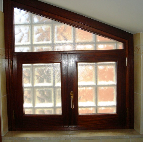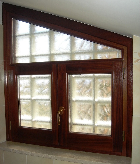 Finestra 2 ante in legno di iroko tinto con sopraluce